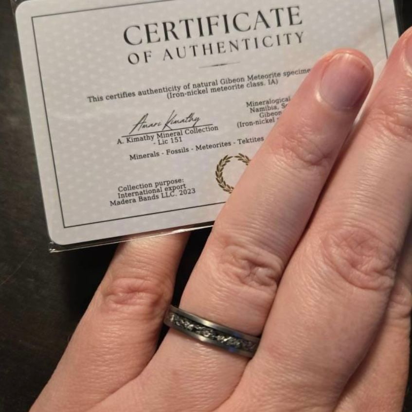 - UNIQUE: Every meteorite wedding ring has its own distinct pattern of Widmanstätten lines, giving them a unique appearance.