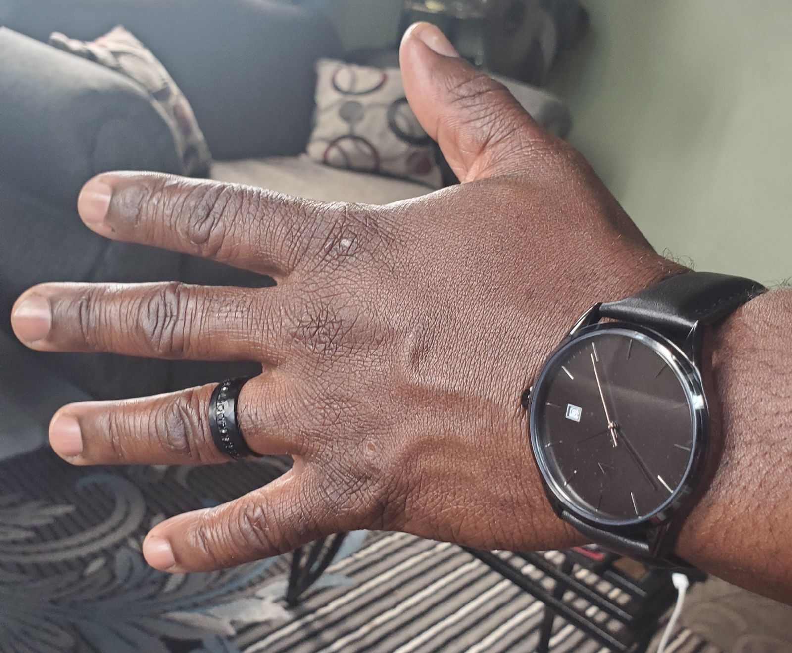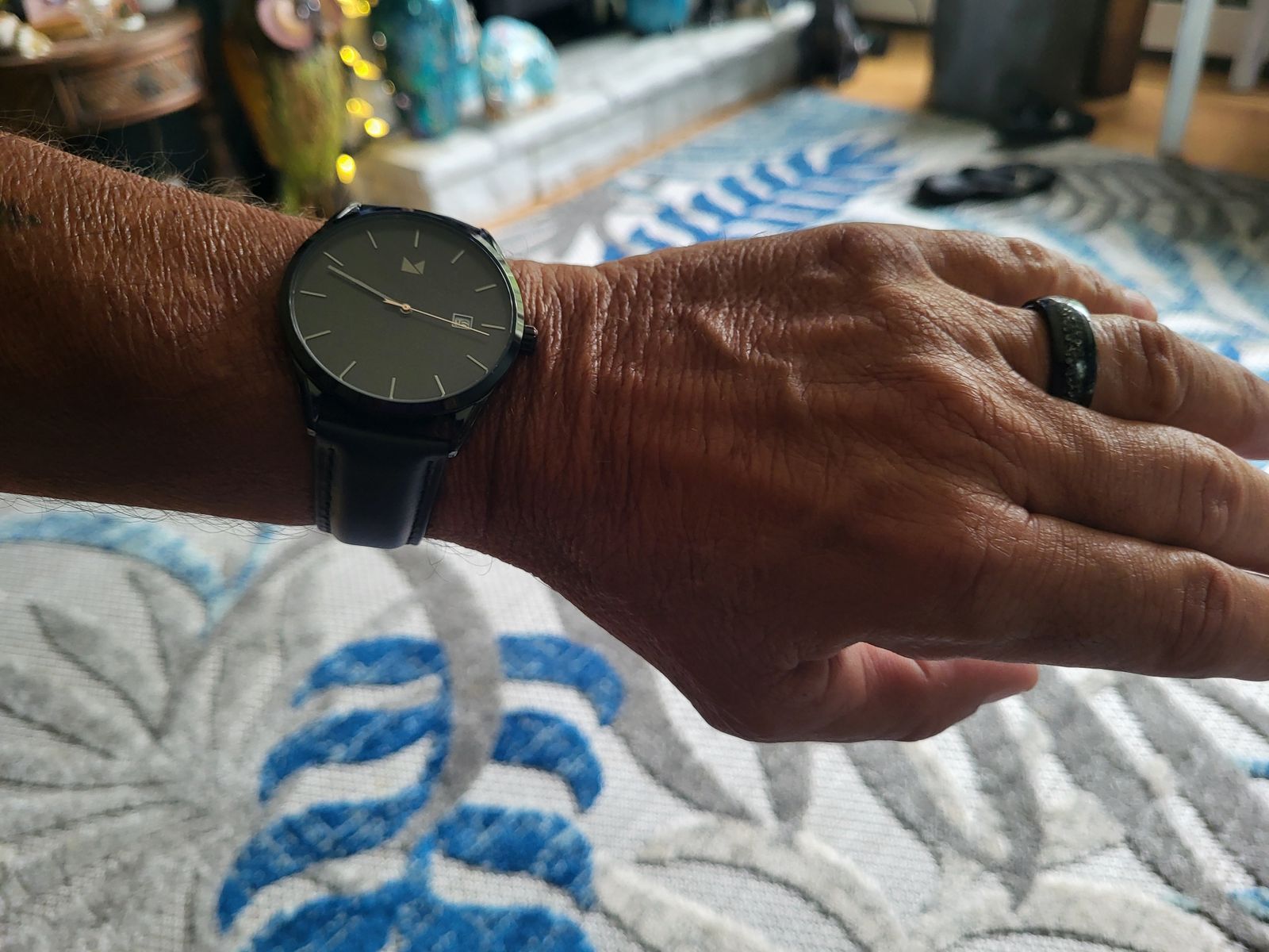 I purchased this onyx watch along with the black panther ring for my husband for our 10 year wedding anniversary I love the sleek love the genuine leather it's just beautiful I absolutely love it with highly recommended to friends and family