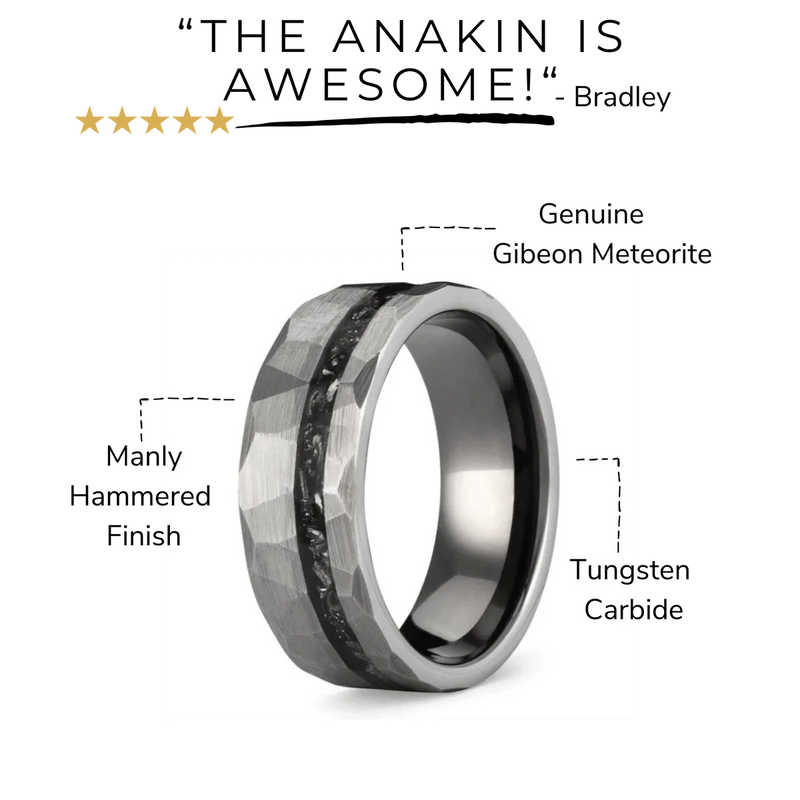 • The Anakin Genuine Gibeon Meteorite | Hammered Tungsten | 8mm Wide