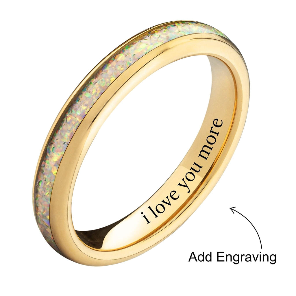 Yes, adding a laser-engraved message, name, or date is such a wonderful way to make your unique opal wedding band even more meaningful. Your engraved message will be a lasting and permanent reminder of this exciting chapter of your fairytale.