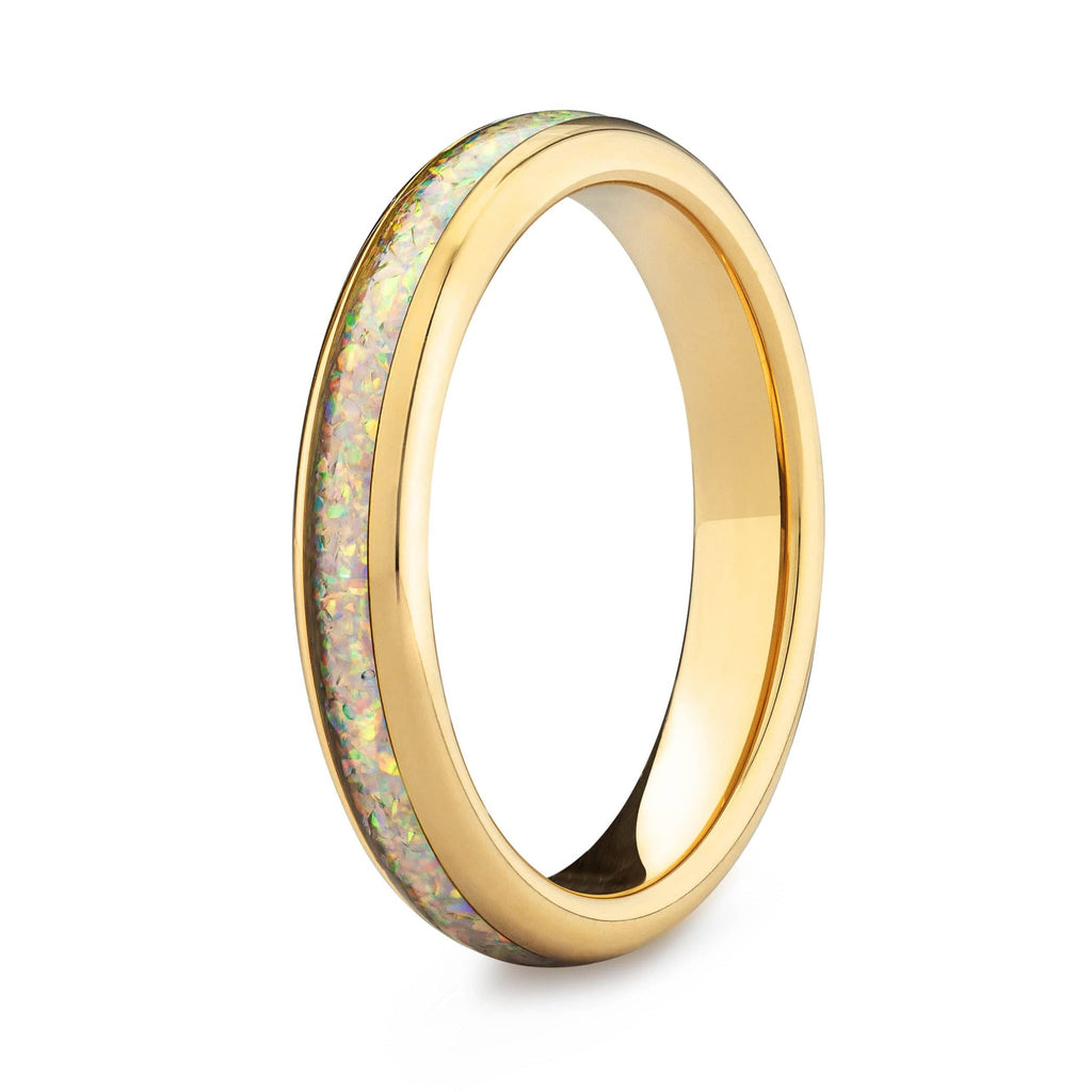 Crafted with NASA-inspired tungsten, our yellow gold opal rings for women unite extraordinary strength with fairytale beauty.