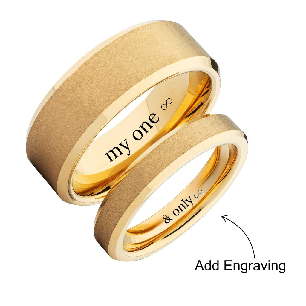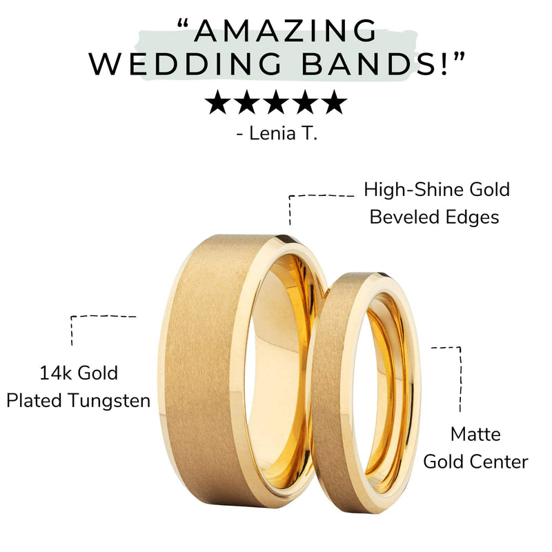 A special couple who has moved mountains for love deserves nothing less than gold. This classic 14k gold–plated tungsten wedding band set is designed to celebrate a bond that can’t be shaken. The perfect blend of modern craftsmanship with classic sophistication, this matching set worthy of the forever it represents.