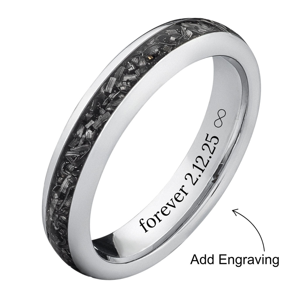 We’ll take care of you. As long as the ring hasn’t been engraved, it’s eligible for 30-day returns. If you’d like to verify your size before purchasing your white gold meteorite ring, we can mail you a ring sizer, which is included free with laser engravings and wedding ring sets for him and her.